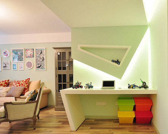 頂面:整體或者局部的吊頂、裝飾面、隱藏式的燈光。